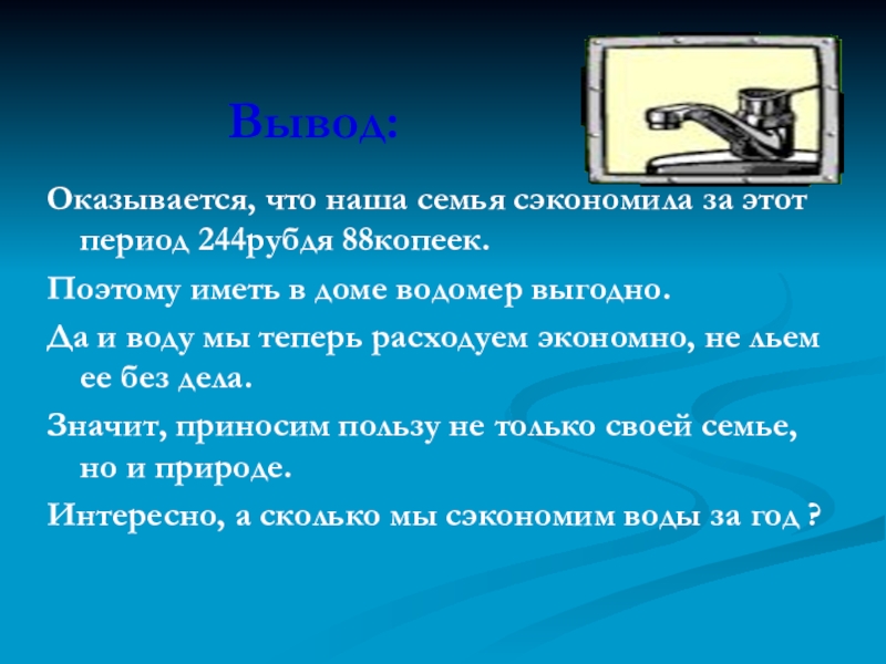 Да и воду мы теперь расходуем экономно, не льем ее без дела.