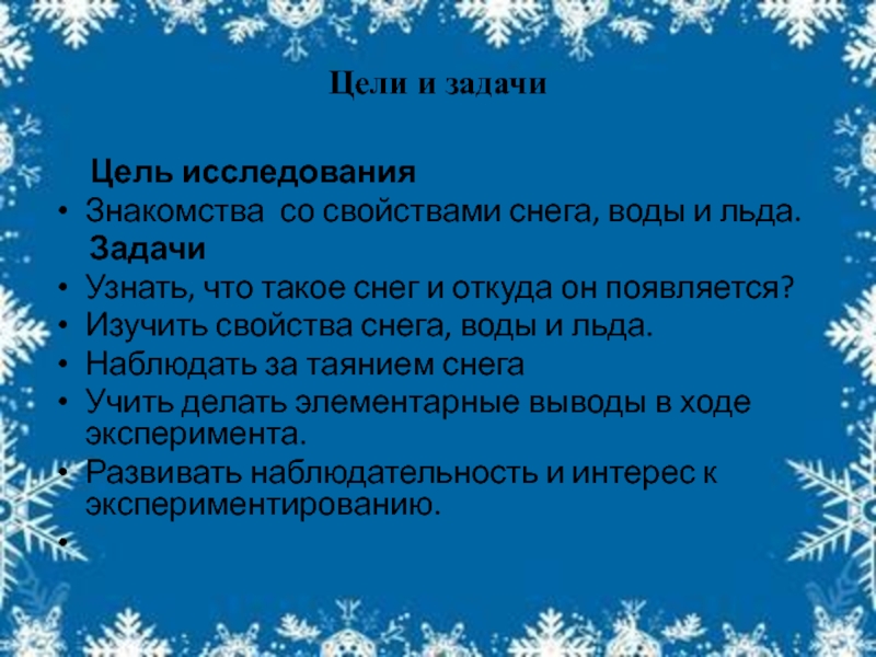 От растаявшего снега вода получилась очень холодная, ледяная, определила свойства воды: