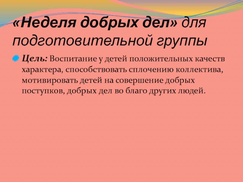 Слайд 4«Неделя добрых дел» для подготовительной группы