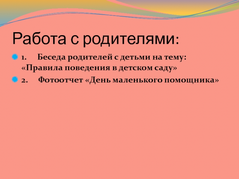 Слайд 7Работа с родителями: