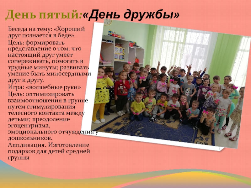 Слайд 14День пятый:«День дружбы»