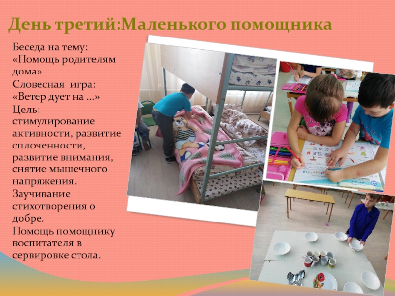 Слайд 11День третий:Маленького помощника