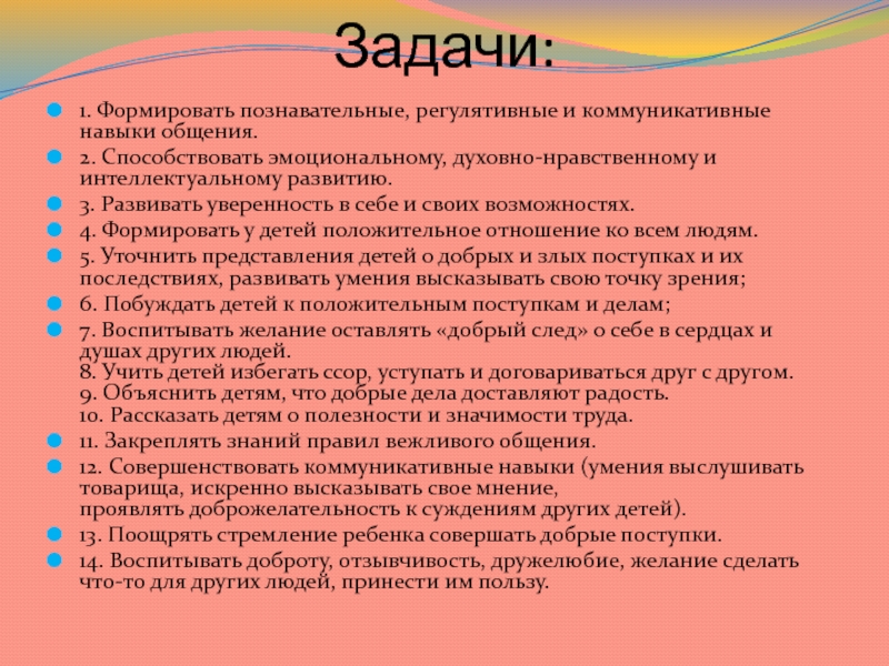 14. Воспитывать доброту, отзывчивость, дружелюбие, желание сделать что-то для других людей, принести им пользу.