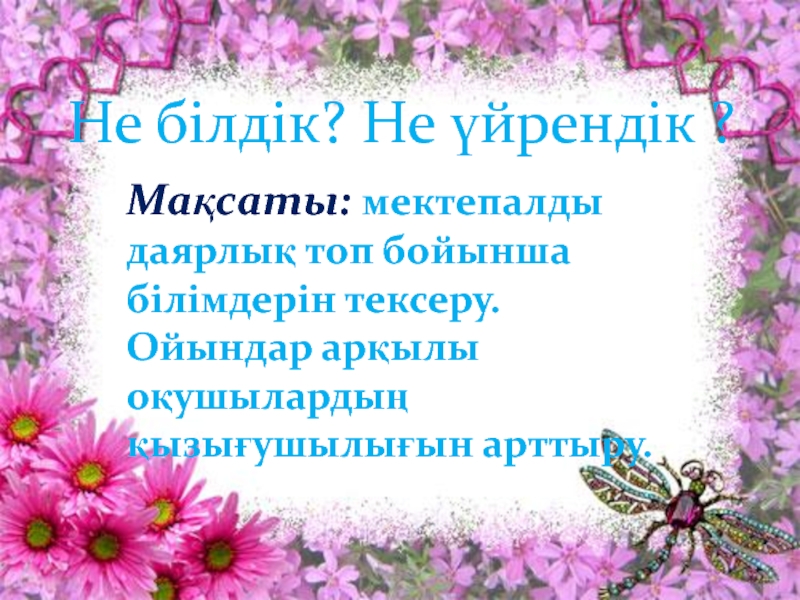 Презентация, доклад на тему Не білдік, не үйрендік атты сыныптан тыс жұмыс