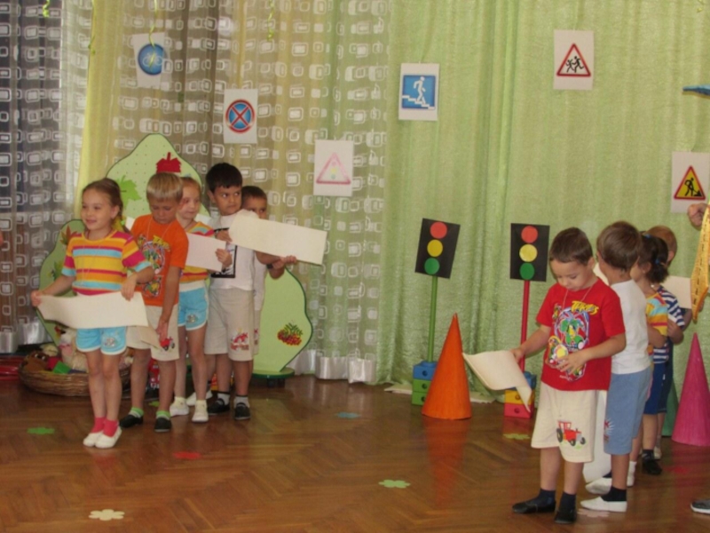 Задачи:Способствовать закреплению знаний детей о правилах безопасного поведения на проезжей части дороги; дорожных знаках; о назначении светофора;Развивать
