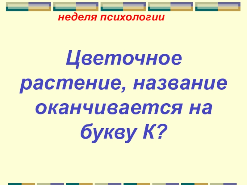 неделя психологииЦветочное растение, названиеоканчивается на букву К?