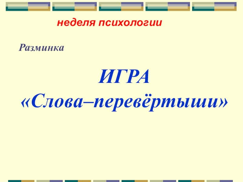 неделя психологииРазминка ИГРА«Слова–перевёртыши»