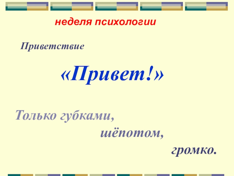 неделя психологии Приветствие «Привет!»Только губками, шёпотом,