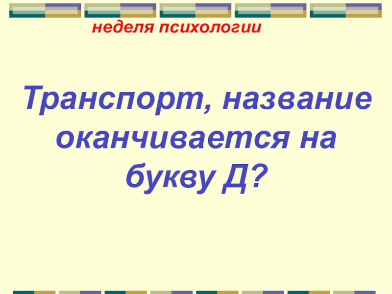 неделя психологииТранспорт, названиеоканчивается на букву Д?