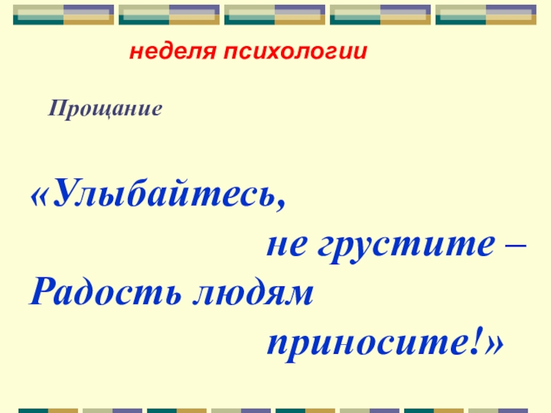 неделя психологии Прощание «Улыбайтесь,            не грустите