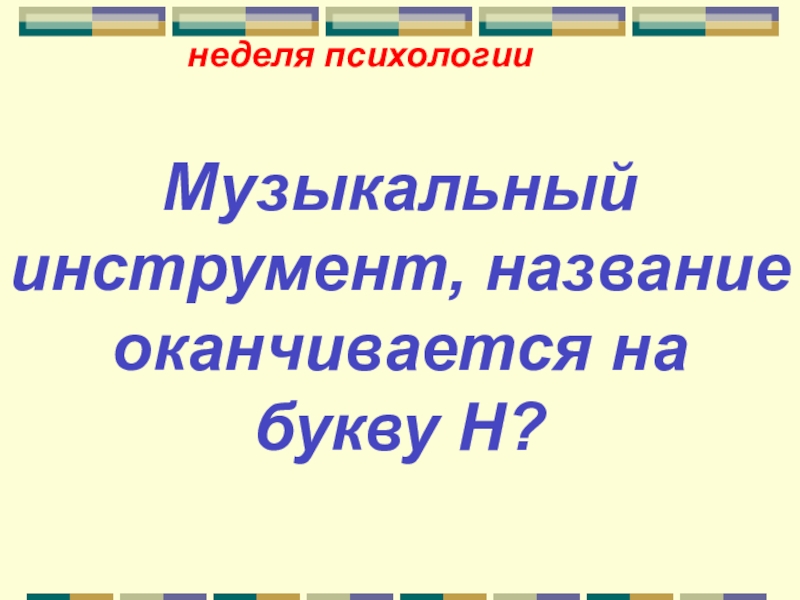 неделя психологииМузыкальный инструмент, названиеоканчивается на букву Н?