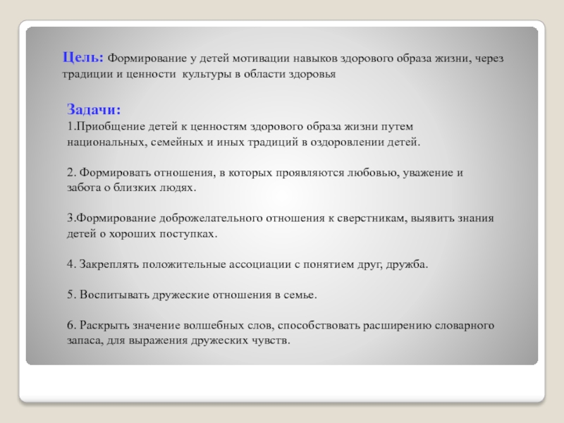 6. Раскрыть значение волшебных слов, способствовать расширению словарного запаса, для выражения дружеских чувств.