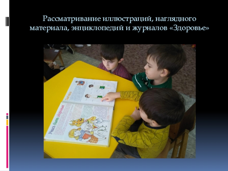 Слайд 2Рассматривание иллюстраций, наглядного материала, энциклопедий и журналов «Здоровье»