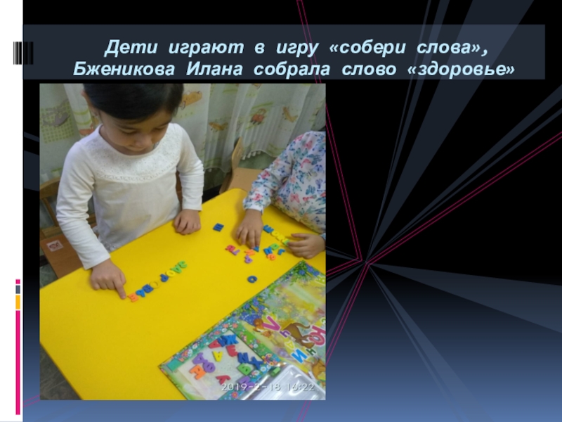Слайд 4 Дети играют в игру «собери слова», Бженикова Илана собрала слово