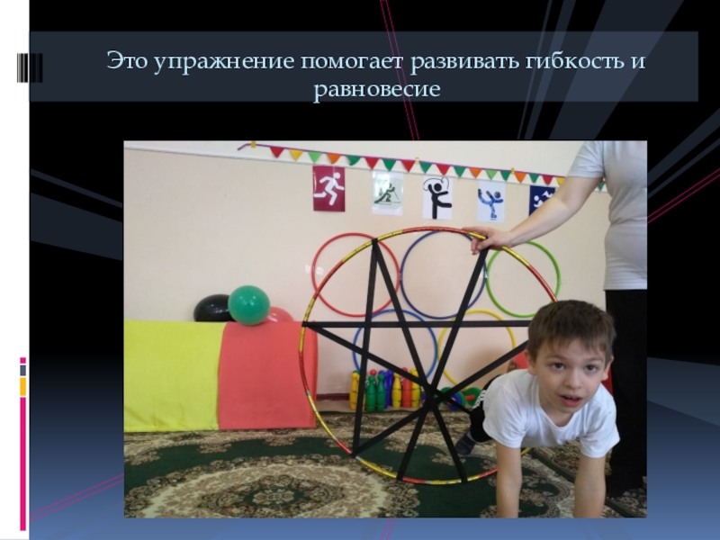 Слайд 20Это упражнение помогает развивать гибкость и равновесие