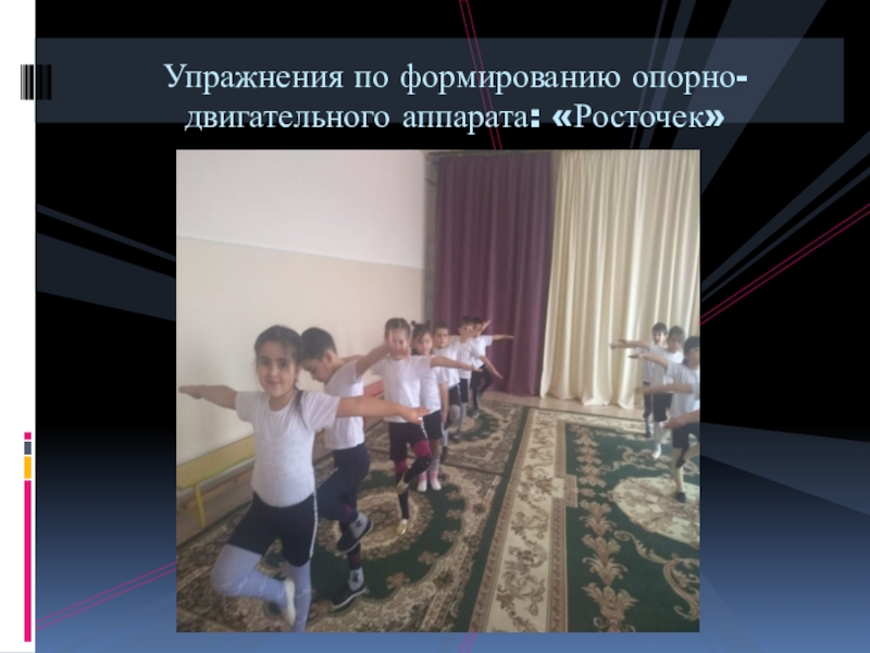 Слайд 15Упражнения по формированию опорно-двигательного аппарата: «Росточек»