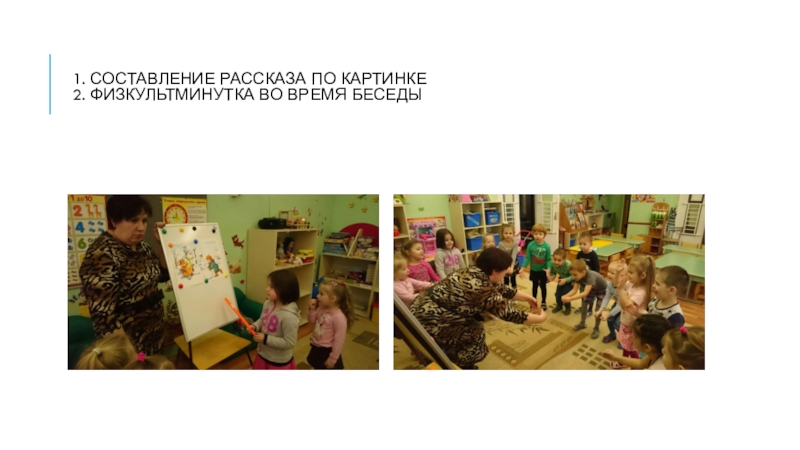 Совершенствование связной речи, составление описательного рассказа по картинке. Развитие диалогической речи (продолжать учить детей отвечать на вопросы).