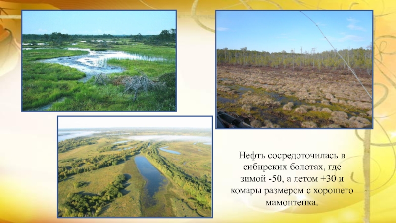 Слайд 6Бурить в болоте невозможно, поэтому нефтяники сначала вырубают лес, осушают болото