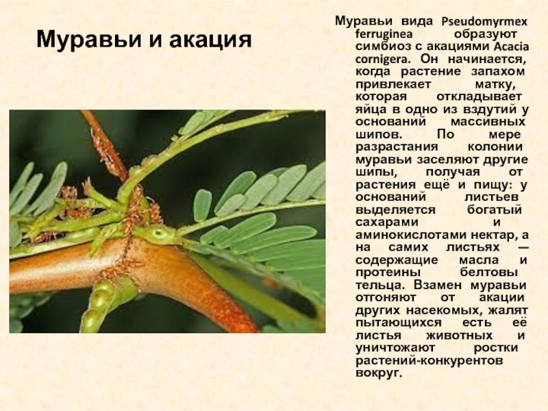 Слайд 5Муравьи и акация