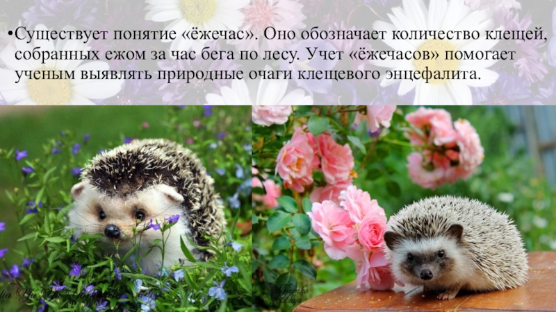 Слайд 5Существует понятие «ёжечас». Оно обозначает количество клещей, собранных ежом за час