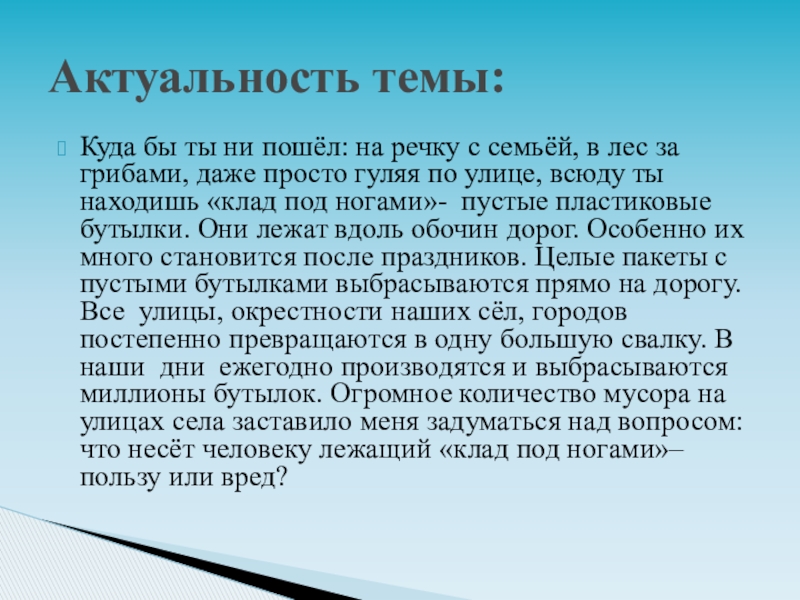 Актуальность темы: