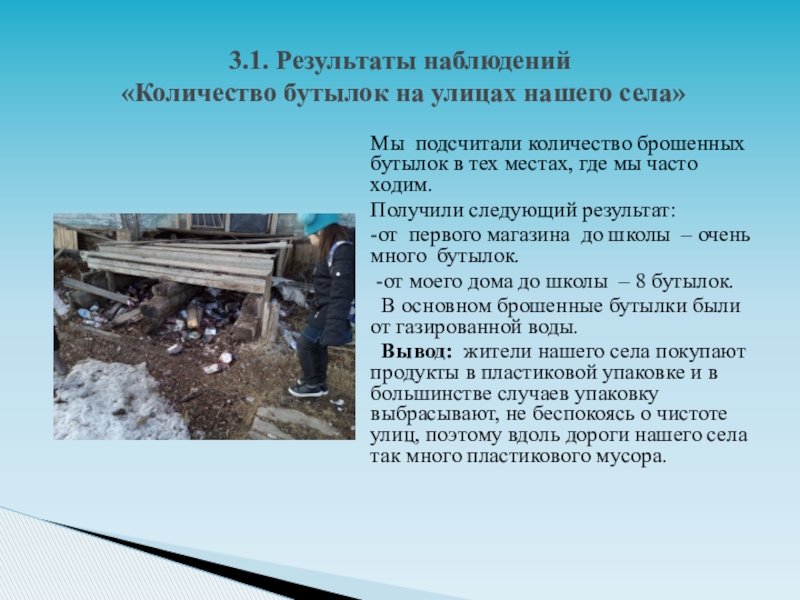 «Количество бутылок на улицах нашего села»