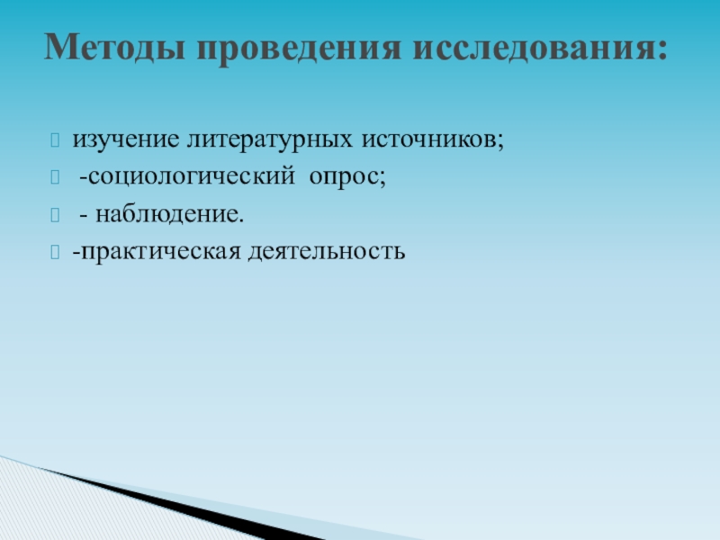 Методы проведения исследования: