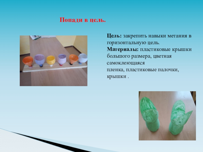 Цель: закрепить навыки метания в горизонтальную цель.