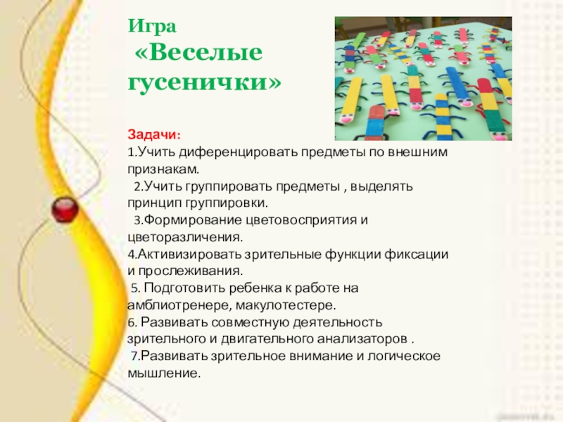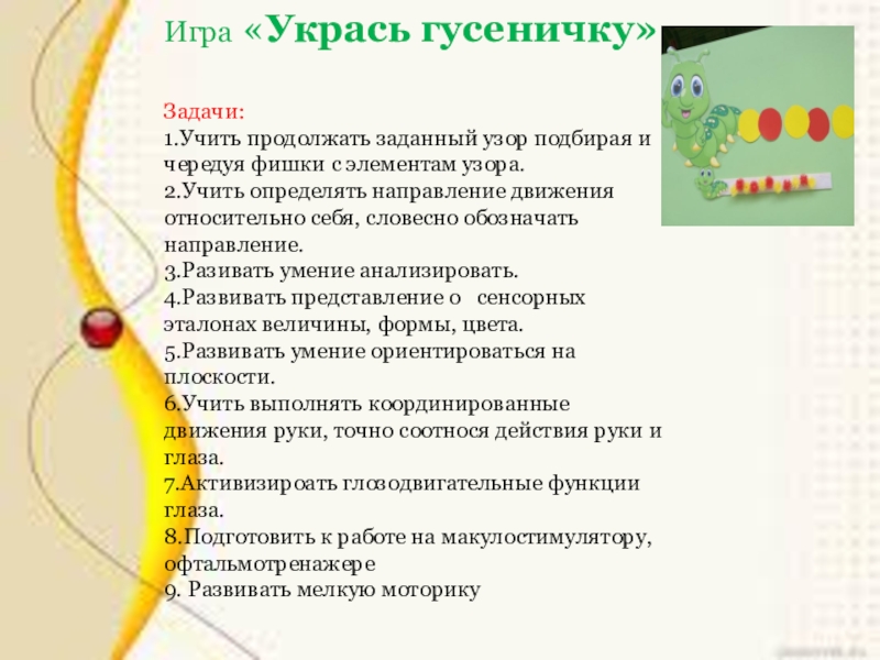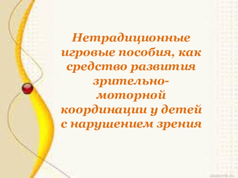 Слайд 1Нетрадиционные игровые пособия, как средство развития зрительно-моторной координации у детей с