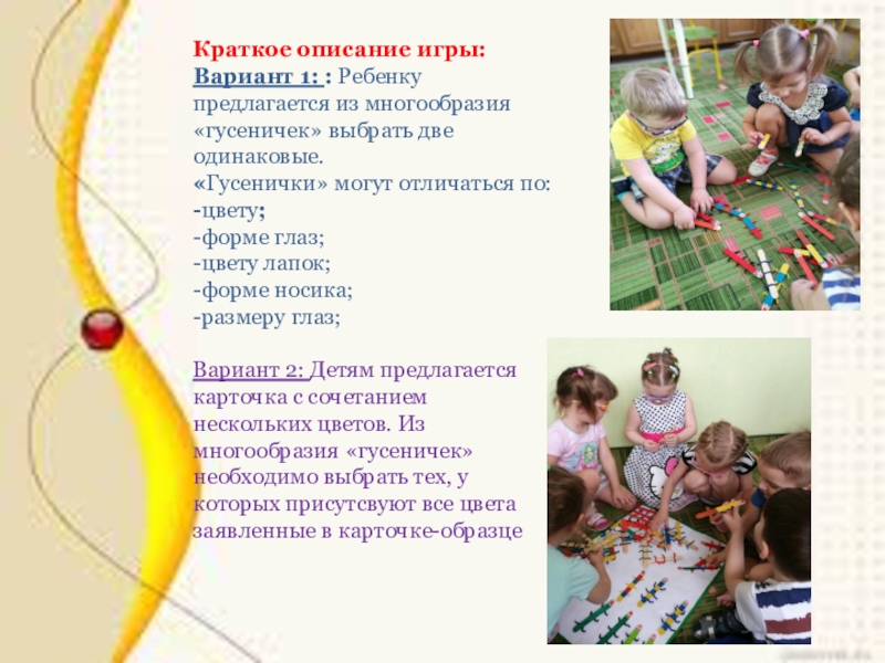 Вариант 1: : Ребенку предлагается из многообразия «гусеничек» выбрать