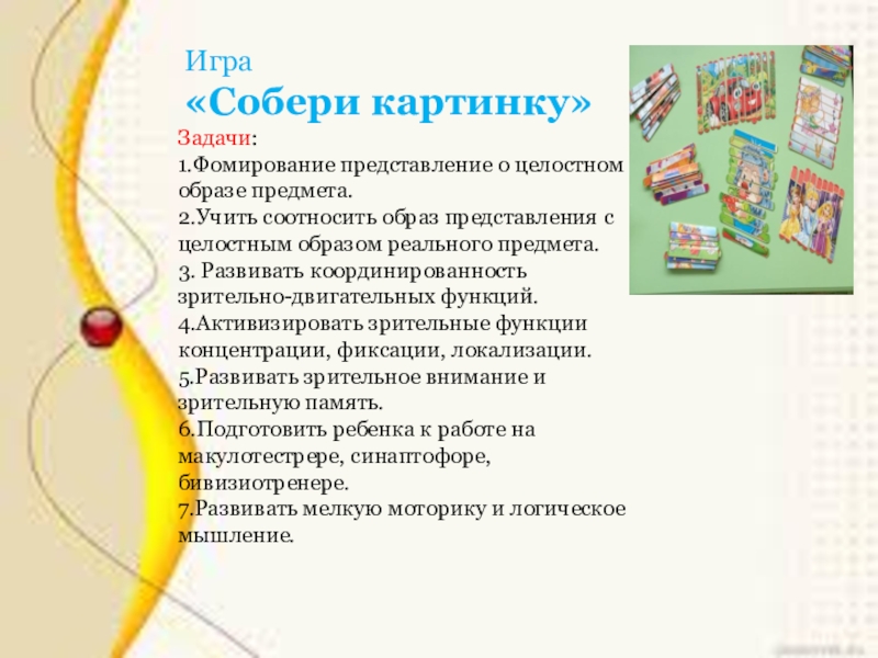 7. Развивать бинокулярное зрение и глазодвигательные функции глаза.