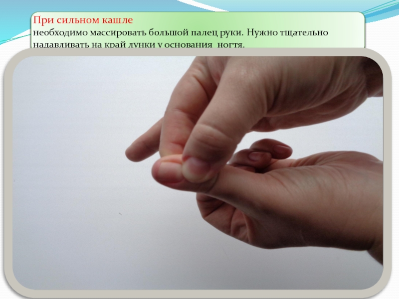 Слайд 20Точечный массаж при сильном кашле