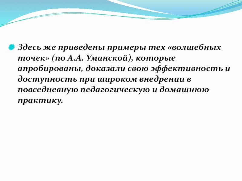 Здесь же приведены примеры тех «волшебных точек» (по А.А. Уманской), которые