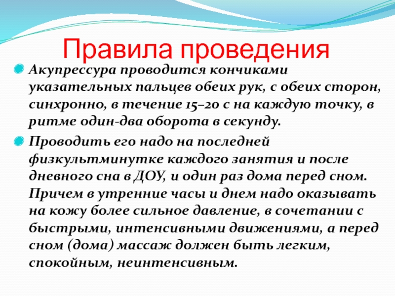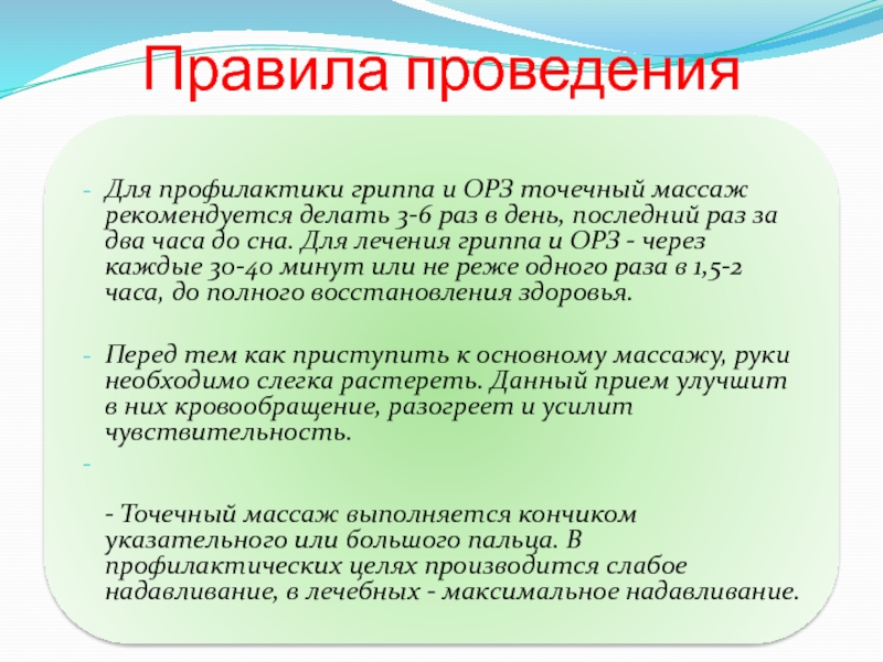 Слайд 11Правила проведения массажа