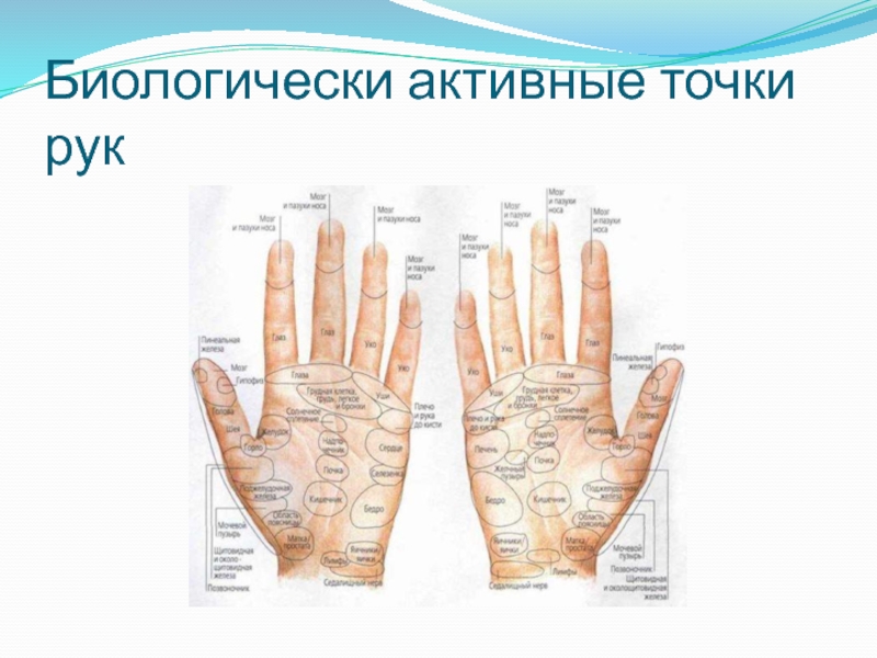 Слайд 6Биологически активные точки рук