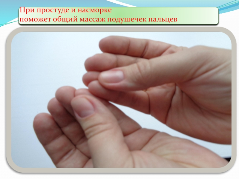 Слайд 13Точечный массаж при простуде и насморке