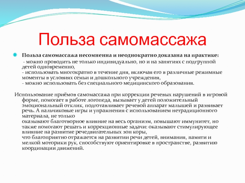 Слайд 9Польза самомассажа