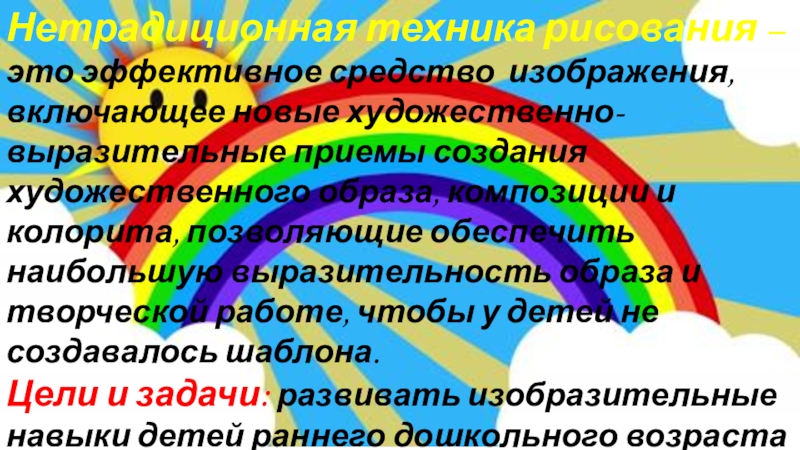 Слайд 2Нетрадиционная техника рисования – это эффективное средство изображения, включающее новые художественно-выразительные