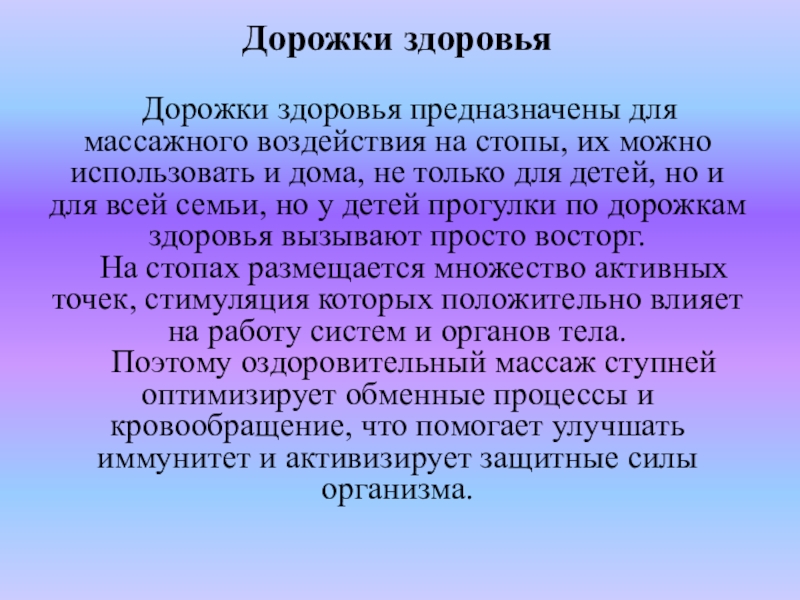 Дорожки здоровья предназначены для массажного воздействия на стопы,