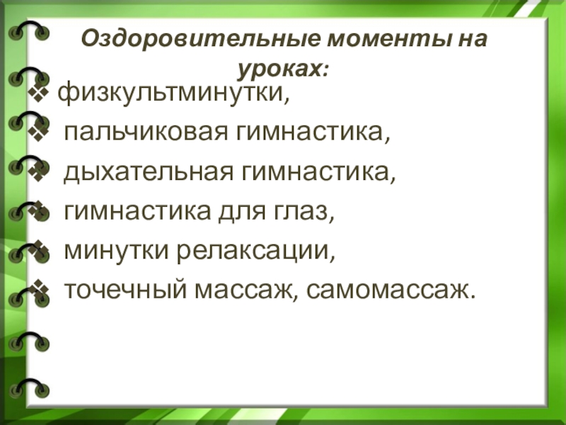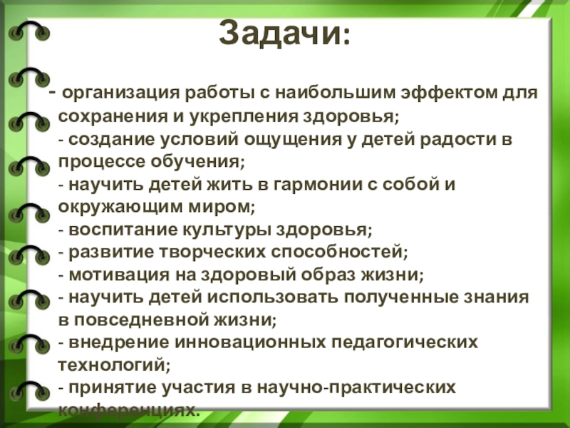 - организация работы с наибольшим эффектом для сохранения и укрепления