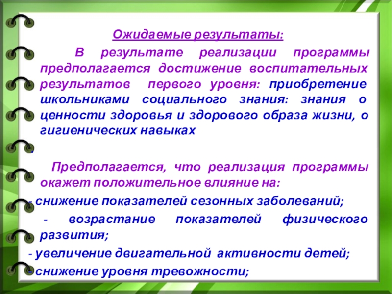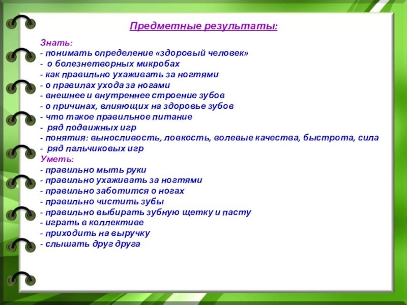 первого уровня: приобретение школьниками социального знания: знания о ценности здоровья и здорового образа жизни, о гигиенических навыках