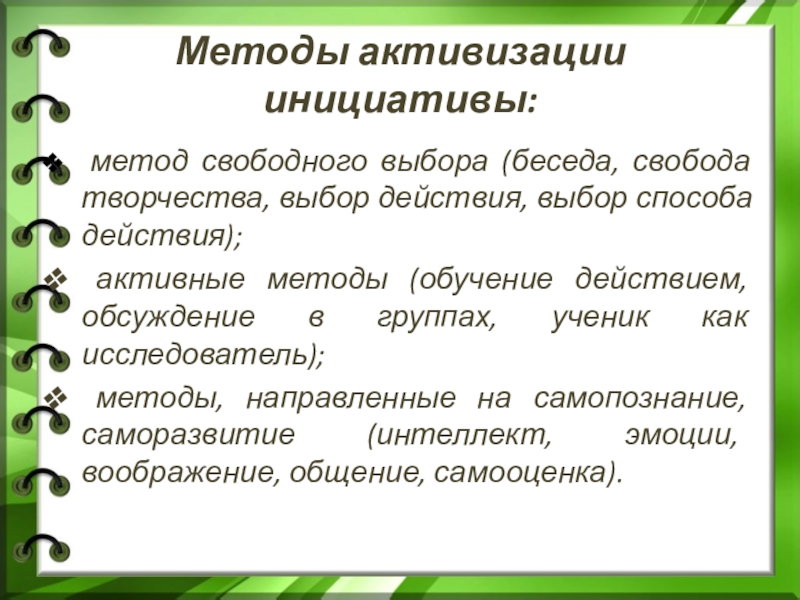 метод свободного выбора (беседа, свобода творчества, выбор действия,