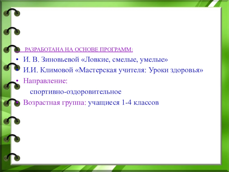 В. Зиновьевой «Ловкие, смелые, умелые»