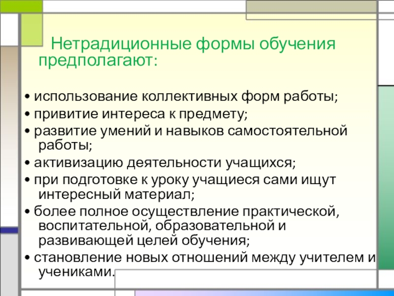 Слайд 6 Нетрадиционные формы обучения предполагают: