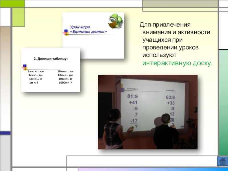 Слайд 13 Для привлечения внимания и активности учащихся при проведении уроков