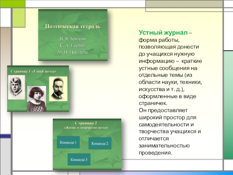 Слайд 19Устный журнал – форма работы, позволяющая донести до учащихся нужную информацию