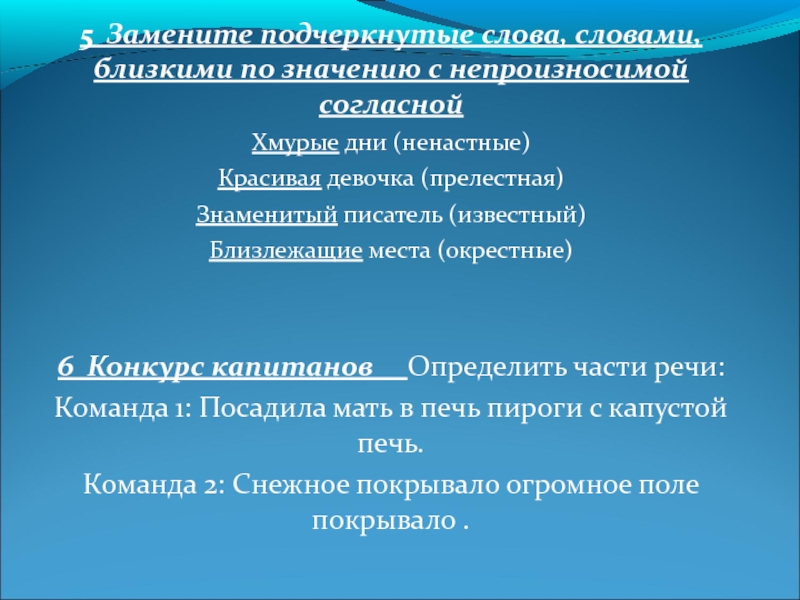 Слайд 185 Замените подчеркнутые слова, словами, близкими по значению с непроизносимой согласной