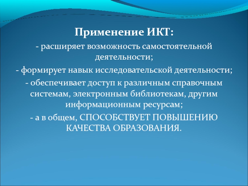 Слайд 9Использование ИКТ позволяет проводить уроки: