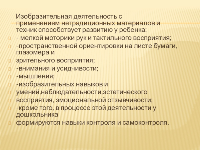 Слайд 8 Изобразительная деятельность с применением нетрадиционных материалов и техник способствует развитию