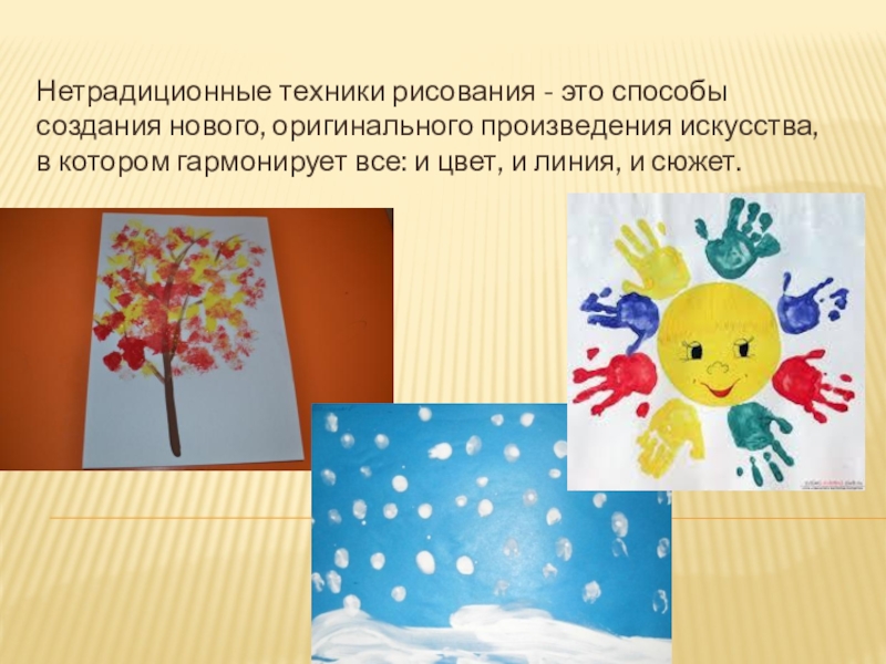 Слайд 2Нетрадиционные техники рисования - это способы создания нового, оригинального произведения искусства,